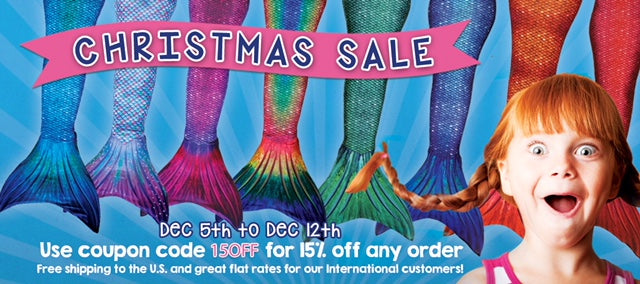 We're happy to announce our newest Holiday Promotion! 15% off of ANY order! Such a great way to get the Mermaid look you want at a great price. Just use the code 15OFF when you order. And guess what?? The code applies to everything, including sale prices! Woo Hoo!!