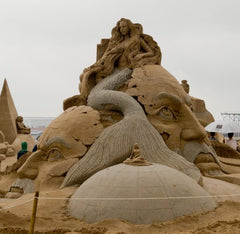 A few years ago when I had the amazing opportunity to return to London, my husband and I were walking along the banks of the Thames. We looked down and on the sandy shore next to the gloomy water was a man with a suitcase.In the suitcase, he had various kitchen tools that he was using to make an incredible mermaid sculpture. He used found shards of pottery and other found objects to decorate her eyes and tail. It was amazing.As you might expect, mermaids are popular subjects for sand and beach mermaid art.Read below for some incredible mermaid beach...