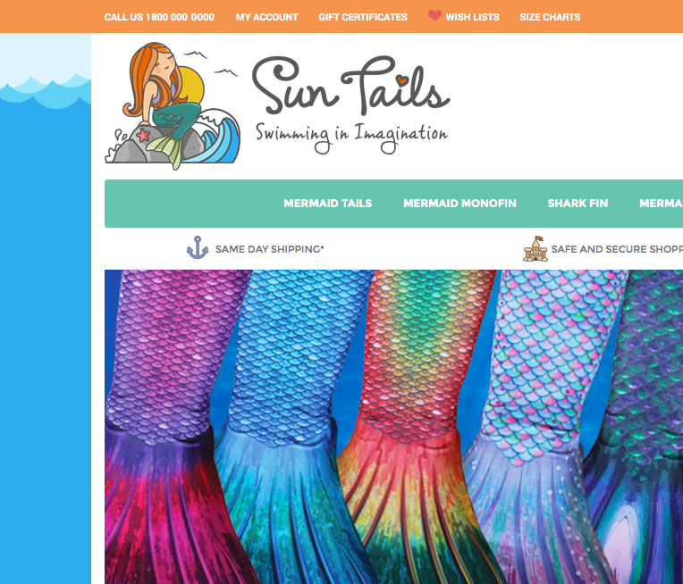 Sun Tail Mermaid has been looking pretty blah lately! We've got some site-wide issues that are getting fixed and soon, we'll be showing off our shiny new look. Here's a little sneak peek!Pretty sweet, right? We can't wait! We have a couple more surprises coming down the hatch too: our swimsuit line (bikinis and tankinis) is underway, and we're even working on new mermaid tail designs in new colorways. Yay!