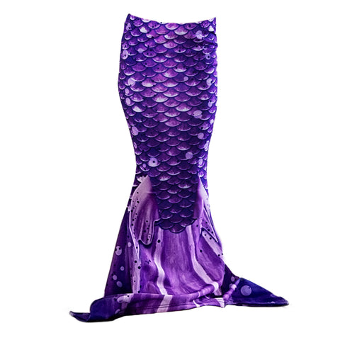 These toddler tails are for younger mermaids who aren't ready for a monofin yet but still want to get in on the fun. Made with safety and comfort at their core, our toddler mermaid tail is designed to let the feet show through the opening at the bottom. This makes them easy to walk in for a fun way to play dress up, as well as easy to swim in with proper adult supervision. The toddler tail fits like a skirt with an overall fit that is looser and shorter to allow for fun and safety. Our fun tails come in size XS which fits ages 2-3, and S which fits ages 4-5 so you can find the right fit for your little one to embrace their inner mermaid. Choose from a range of colors to match her personality. Whether looking for a pastel option, blue lagoon hue, or a multi-colored rainbow style, we have an option here for any mermaid in the making. Regardless of which color is right for her, all of our tails have realistic scales with a bit of sparkle for added appearance. With their lively color and scale graphic, your little one could pass for the real deal! These skirts are great for dress up or special photo opportunities along the seashore. What little girl doesn't dream of being a mermaid? Make all her dreams come true with a beautiful mermaid tail for kids in her favorite color!